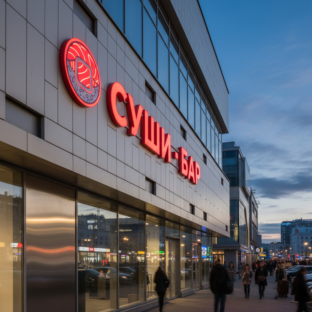 Технология основана на генеративных нейросетях, обученных на тысячах успешных проектов наружной рекламы и интерьерных вывесок.