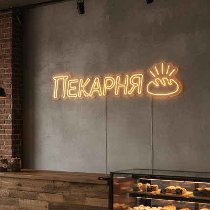 Неоновая вывеска «Пекарня с батоном» жёлтая