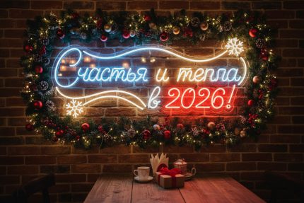 Неоновая вывеска «Счастья и тепла в 2026!»