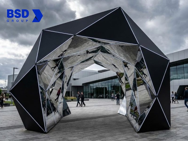 Сложные формы: Благодаря технологии вальцовки и гроовинга (фрезеровка паза и сгиб) мы создаем футуристичные арки, полигональные фигуры (Low Poly) и идеально гладкие «текучие» поверхности без видимых швов.