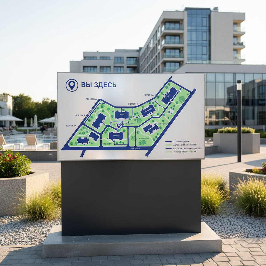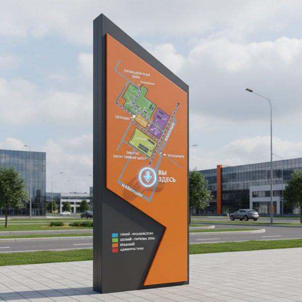 По сути, это сочетание высококачественной графической схемы территории и передовых технологий светодиодной подсветки, заключенное в прочный и эстетичный корпус. Её можно рассматривать как особый вид информационного стенда с подсветкой, где основным контентом является план-схема объекта.