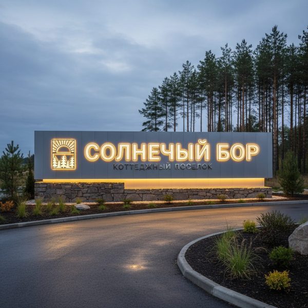 Название поселка должно быть читаемым и заметным. Для этого используют объемные буквы, которые лучше воспринимаются с расстояния.