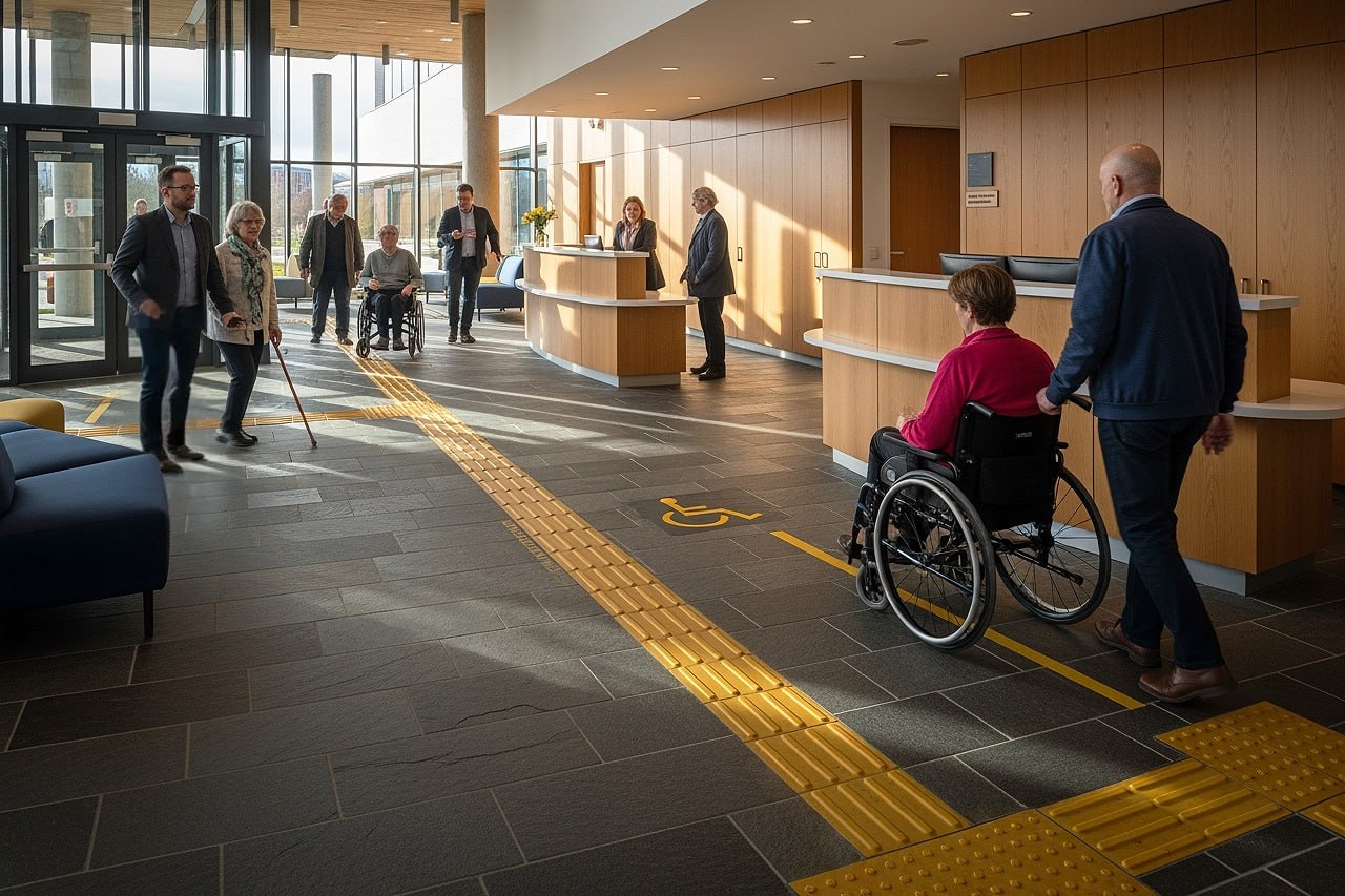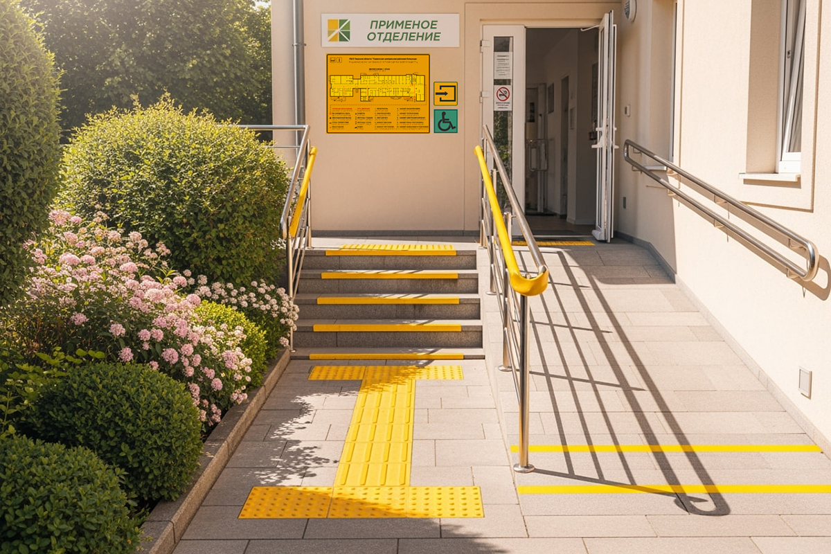 МГН-навигация — это комплекс визуальных, тактильных, аудио- и графических решений, адаптированных под особенности восприятия маломобильных групп населения. Основные элементы: