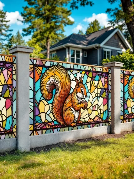 Фотосетка «Белка в Витраже» 3 х 1,5 метра стандарт – Масштабное полотно лесной сказки