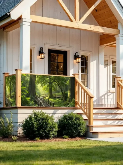 Размер 3 на 1,5 метра является идеальным для решения более масштабных задач декорирования. Этот формат позволяет одним полотном закрыть значительную часть забора, создать впечатляющий фон на террасе или эффектную перегородку. В данной категории представлен богатый ассортимент изображений: от пышных зеленых насаждений, таких как реалистичные имитации цветущей азалии, густого плюща, туи или бамбука, до панорамных видов природы, морских пейзажей, горных ландшафтов или стильных урбанистических мотивов. Каждая фотосетка выполнена с высочайшей степенью детализации и фотографической точности, что обеспечивает поразительную реалистичность и позволяет изображению органично сливаться с окружающей средой, придавая ей ухоженный и стильный вид.