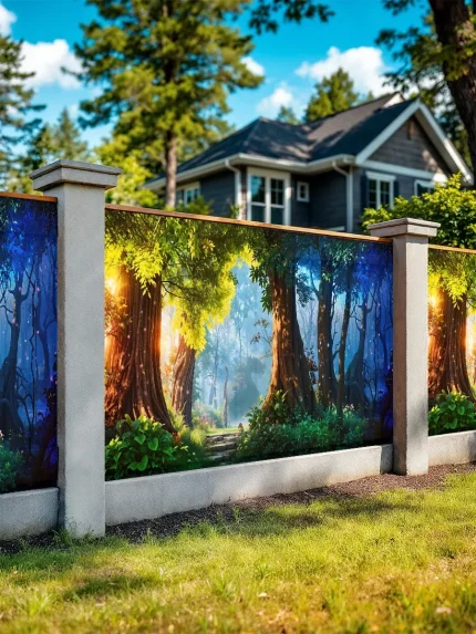 Масштабное эстетическое преображение: Большой размер полотна позволяет создать единый, непрерывный декоративный элемент, который мгновенно меняет восприятие всего пространства. Вы легко превратите длинный забор в цветущий сад или скучную стену в живописный пейзаж.