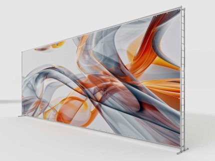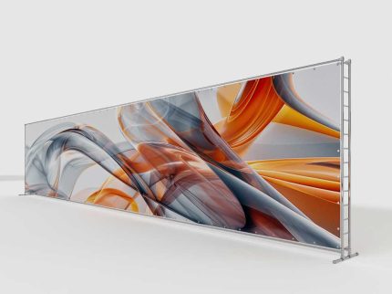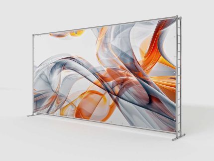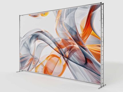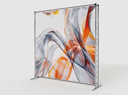 Двойная труба (плоская ферма): Отличный вариант для интерьерных стендов шириной от 3 до 5 метров. Обеспечивает прямую линию натяжки баннера без центрального прогиба.