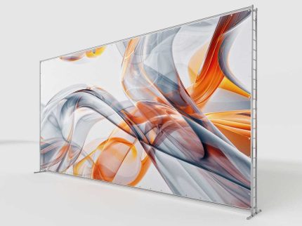 Массивность каркаса Тритикс не означает, что конструкция будет выглядеть грубо. Для создания безупречного фона мы применяем интерьерную широкоформатную печать на плотном литом матовом баннере. Матовое покрытие рассеивает вспышки фотоаппаратов и свет софитов, гарантируя отсутствие белых бликов на фотографиях и в телевизионных трансляциях.