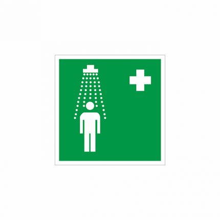 Табличка «Аварийный душ» E 007 — фотолюминесцентная, ПВХ 3 мм, 200×200 мм