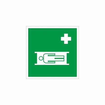 Табличка «Место для носилок» E 008 — фотолюминесцентная, ПВХ 3 мм, 200×200 мм