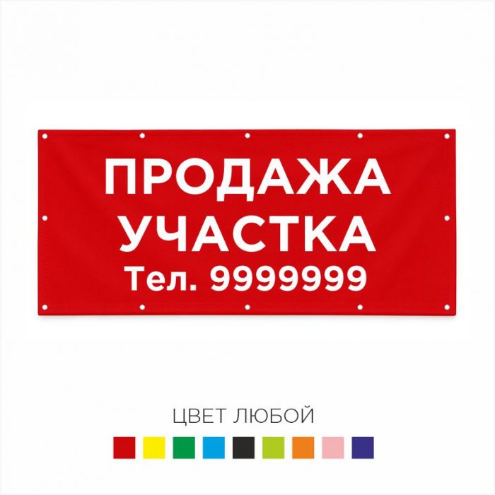 Баннер «Продажа участка» 1×0,5 м — это быстрый и экономичный способ привлечь покупателей к вашему объекту.