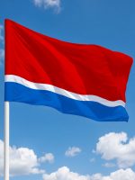 • Устойчивость к влаге: полиэфирное волокно не впитывает воду, флаг быстро сохнет после дождя.