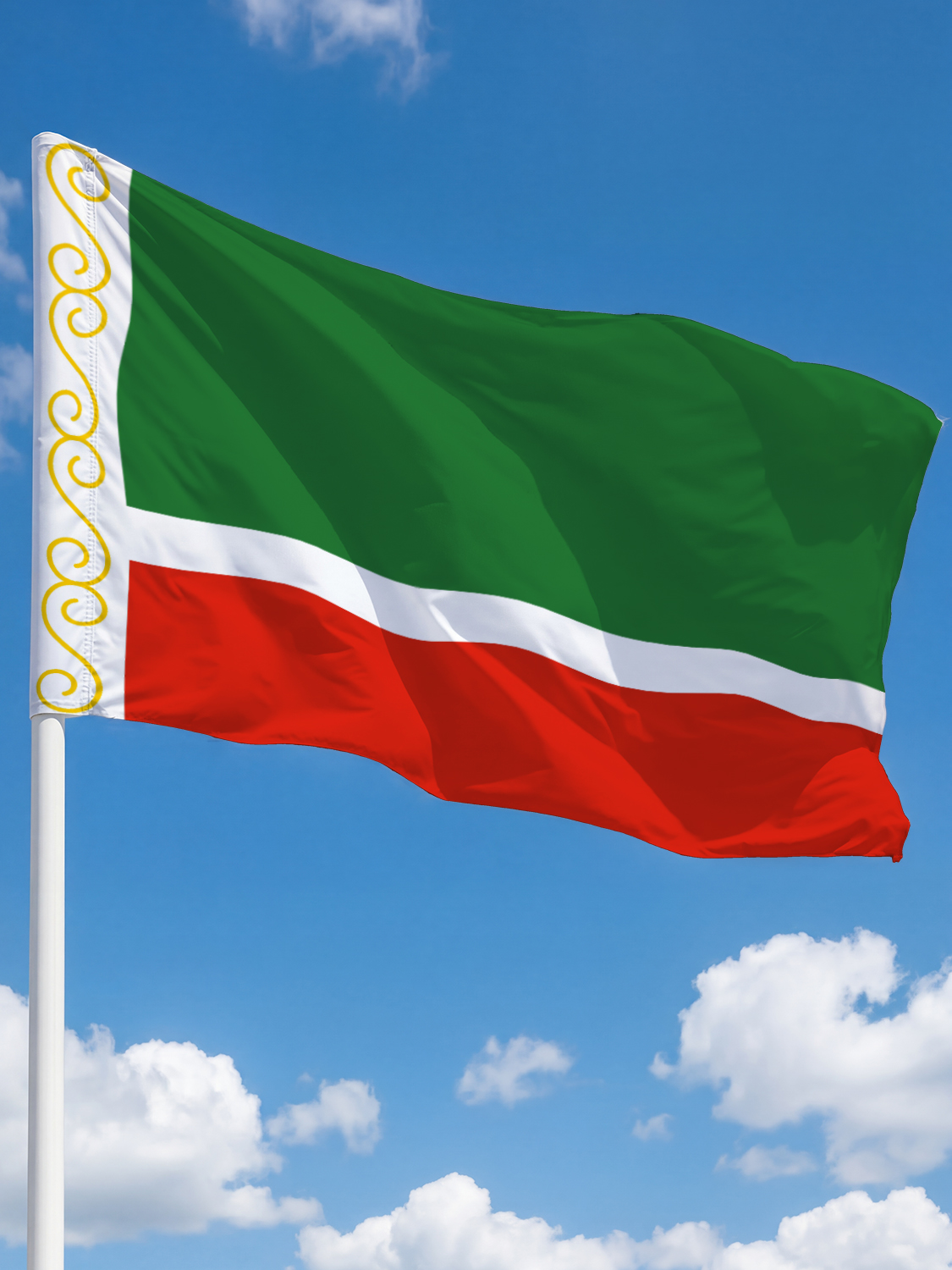 Заказывая флаг Чеченской Республики в нашем магазине, вы получаете изделие, соответствующее официальной символике, выполненное с соблюдением всех стандартов качества. Флаг станет достойным украшением любого пространства и подчеркнёт уважение к культуре и традициям чеченского народа.