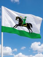 - Чёткость изображения — сублимационная печать передаёт все детали герба и цвета флага с высокой точностью