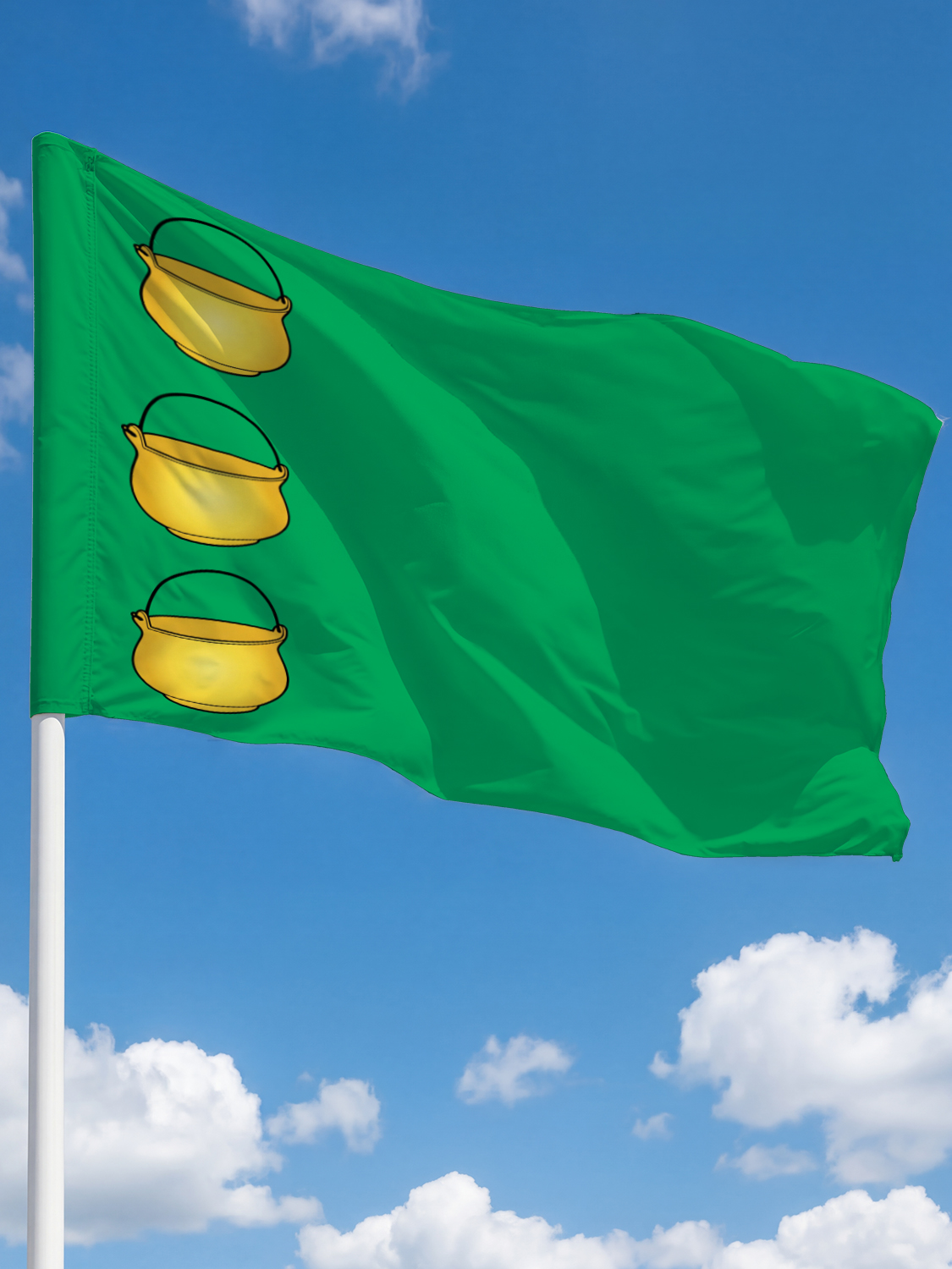 Флаг поставляется в готовом к использованию виде. Стандартный размер 100 × 150 см совместим с большинством серийных флагштоков. Это оптимальный выбор для тех, кто ценит качество, аутентичность городской символики и разумную стоимость.