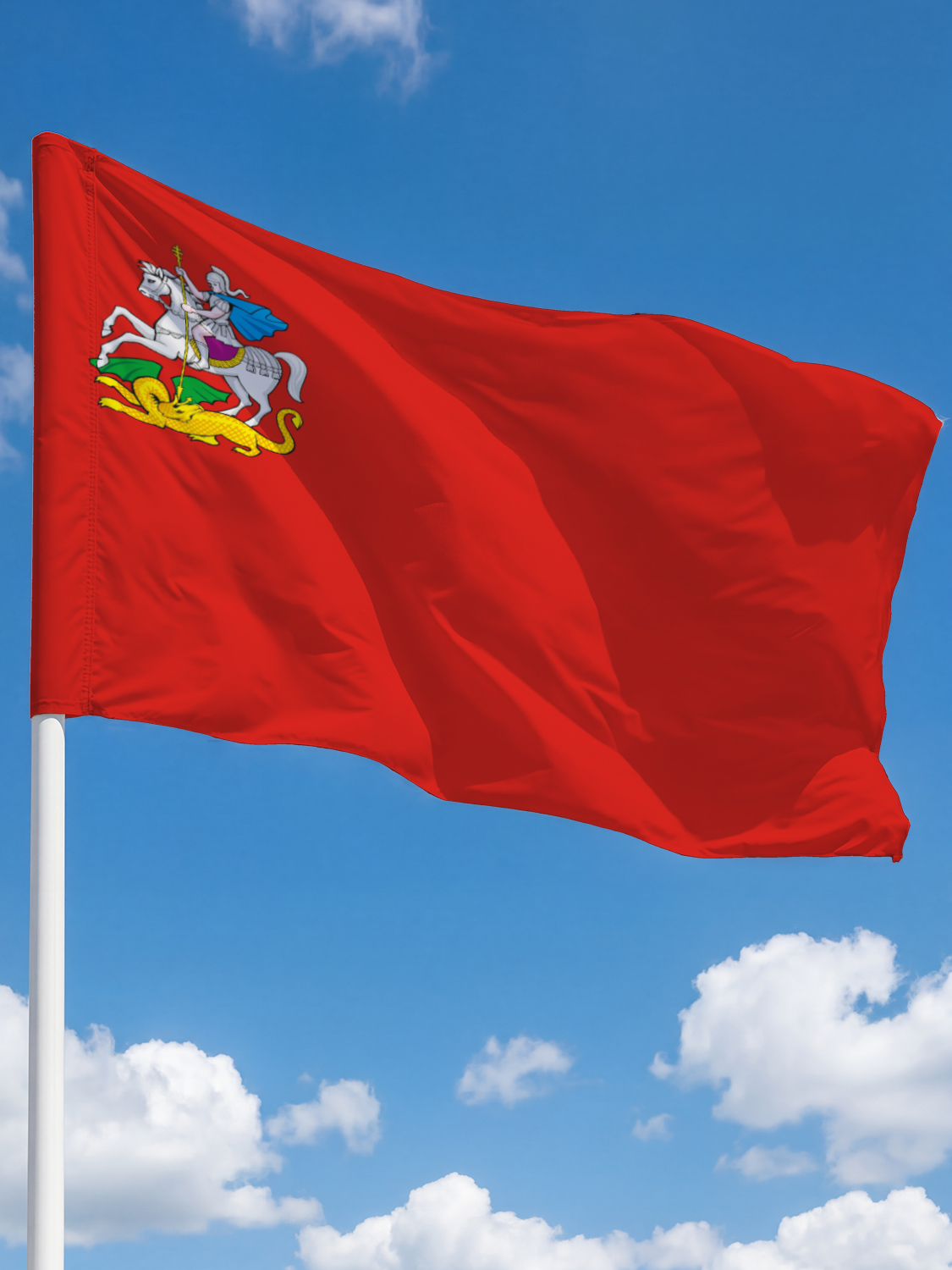 Флаг Московской области представляет собой официальный региональный символ, утверждённый в установленном порядке. Цветовая гамма и геральдические элементы точно воспроизведены на полотне с помощью современных технологий печати, обеспечивающих насыщенность и чёткость изображения. Флаг является важным атрибутом государственной символики и подчёркивает принадлежность к Московскому региону.