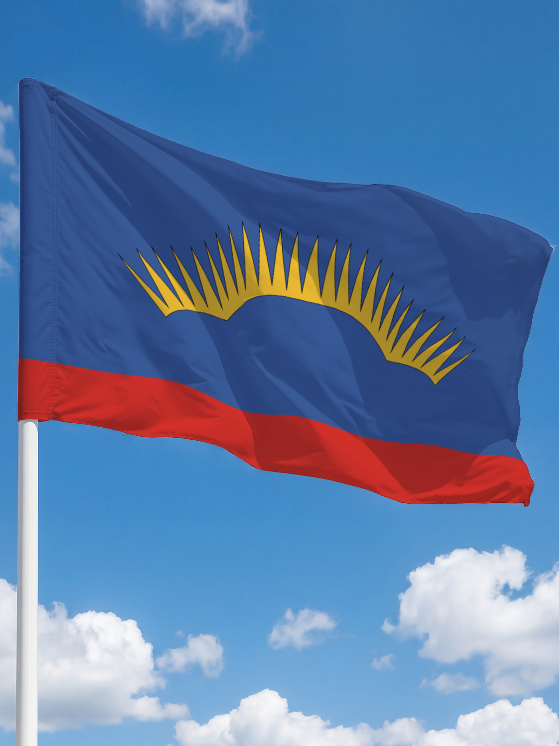 Флаг выполнен из флажной сетки (премиум) — современного синтетического материала с открытой сетчатой структурой. Благодаря этому полотно отличается исключительной воздухопроницаемостью: ветер свободно проходит сквозь ткань, обеспечивая красивое и равномерное развевание даже при слабом ветре. Флажная сетка устойчива к воздействию ультрафиолетового излучения, не выгорает на солнце и сохраняет яркость красок на протяжении длительного времени.