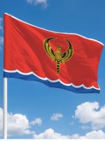Флаг изготовлен из полиэфирного шелка тафетта плотностью 70 г/м² — современного синтетического материала, который сочетает в себе лёгкость, прочность и насыщенную цветопередачу. Ткань обеспечивает красивое плавное развевание даже при слабом ветре, что делает флаг эффектным как в помещении, так и на открытом воздухе.