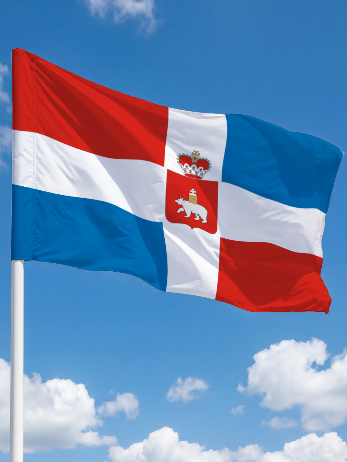 Мы предлагаем флаги, соответствующие официальному описанию символики Пермского края. Изображение нанесено методом сублимационной печати, что гарантирует точное воспроизведение цветов и деталей герба. Флаг готов к использованию сразу после получения — достаточно закрепить его на флагштоке подходящего размера. Заказывайте флаг Пермского края в нашем магазине и получите качественную региональную символику с быстрой доставкой по всей России.