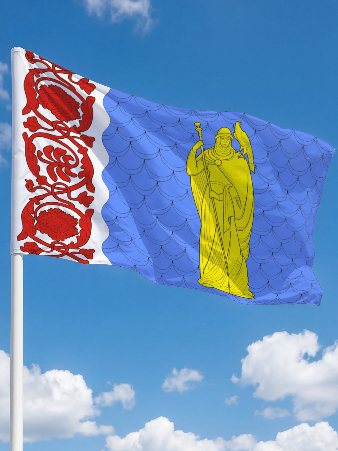 Официальный флаг Сланцевского района в крупном формате 150×225 см — достойное оформление административных зданий, торжественных мероприятий, праздников и официальных церемоний. Флаг изготовлен из высококачественной флажной сетки плотностью 90 г/м², что обеспечивает превосходные эксплуатационные характеристики как в помещении, так и на открытом воздухе.