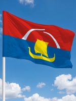 Ткань полиэфирный шелк тафетта — это современный синтетический материал, сочетающий в себе лёгкость, приятный внешний вид и практичность. Флаг из этой ткани обладает характерным шелковистым блеском, хорошо держит форму и красиво развевается даже при слабом ветре или от потока воздуха в помещении. Материал устойчив к выцветанию, не требует специального ухода и сохраняет презентабельный вид в течение длительного времени.