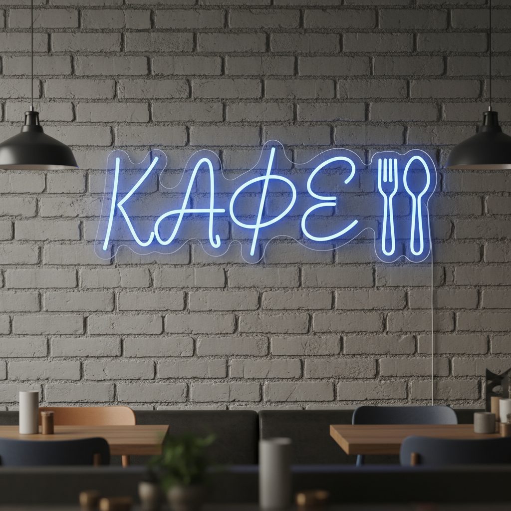 Неоновая надпись «Кафе с приборами»