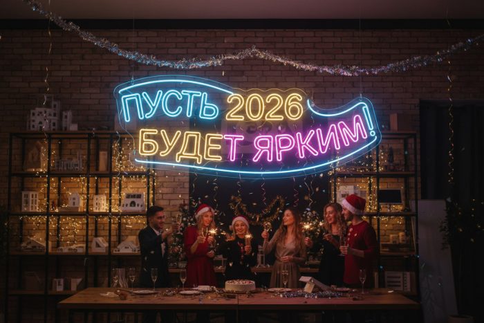 Яркая неоновая вывеска “Пусть 2026 будет ярким!” — идеальное оформление для корпоратива, вечеринки, фотозоны или домашнего праздника.