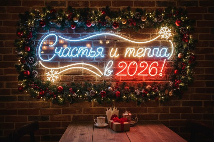 Сделайте праздник по-настоящему ярким вместе с неоновой вывеской «Счастья и тепла в 2026!» — она подарит свет, эмоции и уют в любое пространство.