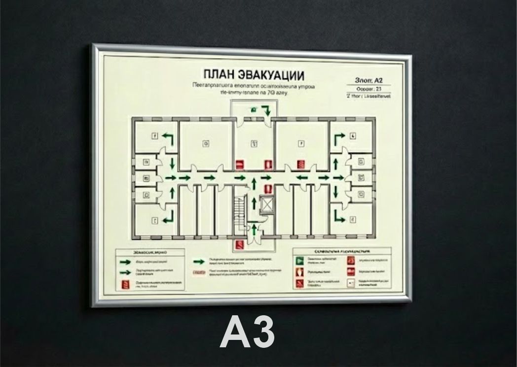 Закажите план эвакуации в рамке А3 — объедините безупречный стиль вашего интерьера с высокими стандартами безопасности.