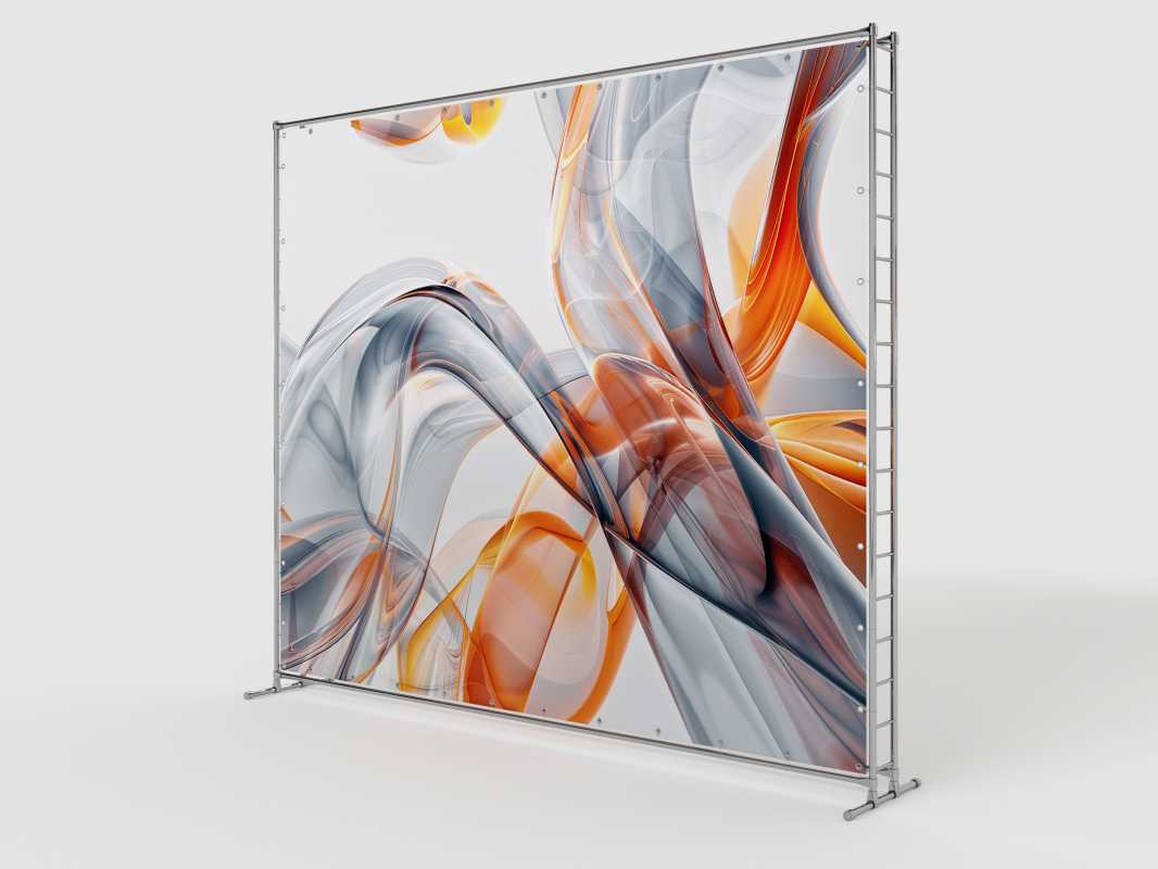 Каркас пресс-волла изготовлен из высококачественной хромированной стали, что обеспечивает конструкции высокую прочность, устойчивость к механическим нагрузкам и долгий срок службы. Хромированное покрытие придаёт стойке презентабельный, представительный вид, подчёркивая статусность мероприятия. Металлические элементы не деформируются при многократной сборке и разборке, сохраняя геометрическую точность конструкции на протяжении всего периода эксплуатации.