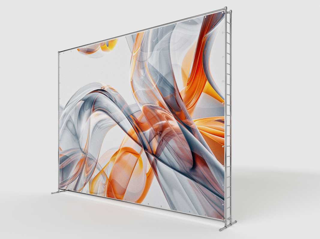 Основа пресс-волла Tritix — жёсткий каркас из хромированной стали. Этот материал обеспечивает высокую несущую способность и устойчивость конструкции при значительных габаритах — ширина 4 метра и высота 3 метра создают внушительную поверхность для брендирования. Хромированное покрытие защищает металл от коррозии и механических повреждений, что особенно важно при регулярной транспортировке и многократном использовании. Каркас выглядит презентабельно, не теряет форму и сохраняет геометрическую точность на протяжении всего срока эксплуатации.