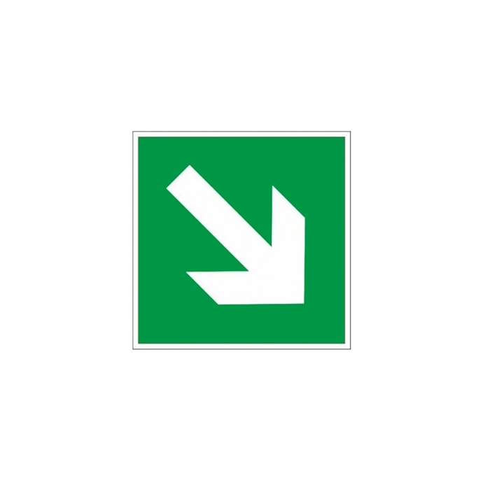 Указательный знак E 01.4 «Стрелка вниз-вправо» размером 200×200 мм используется для обозначения направления движения по эвакуационному пути в ситуациях, когда маршрут проходит под углом — например, по лестнице, в сторону нижнего уровня или через переход с изменением положения. Этот знак является обязательным элементом системы обеспечения безопасности и применяется в зданиях любого типа: производственных, складских, административных, общественных, торговых и жилых комплексах.