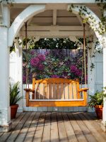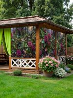 Не ограничивайте свою фантазию только периметром участка! Фотосетка с винтажными розами — это великолепный материал для зонирования пространства. Используйте ее для оформления открытой беседки или террасы: это создаст уютную тень и защитит от ветра, превратив зону отдыха в романтичный уголок. Сеткой можно задекорировать хозяйственные постройки, такие как сараи, дровяники или баки с водой, которые часто портят общий вид ландшафта. Еще один интересный вариант — использование полотна в качестве фоновой декорации для фотозоны на семейных торжествах или свадьбах в саду. Если у вас есть балкон в городской квартире, фотосетка поможет создать приватный «зеленый» оазис, скрыв вас от соседей напротив. Благодаря своей легкости и гибкости, материал можно монтировать на любые криволинейные поверхности, создавая уникальные арт-объекты или декоративные ширмы внутри сада для разделения зоны огорода и зоны отдыха.