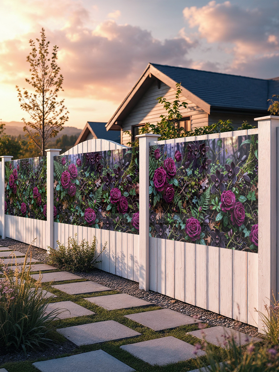 - Универсальность размера: Формат 1,5 х 3 метра является стандартным для большинства современных ограждений. Сетки легко стыкуются между собой, позволяя создать единую бесшовную композицию любой протяженности, сохраняя целостность флористического паттерна.