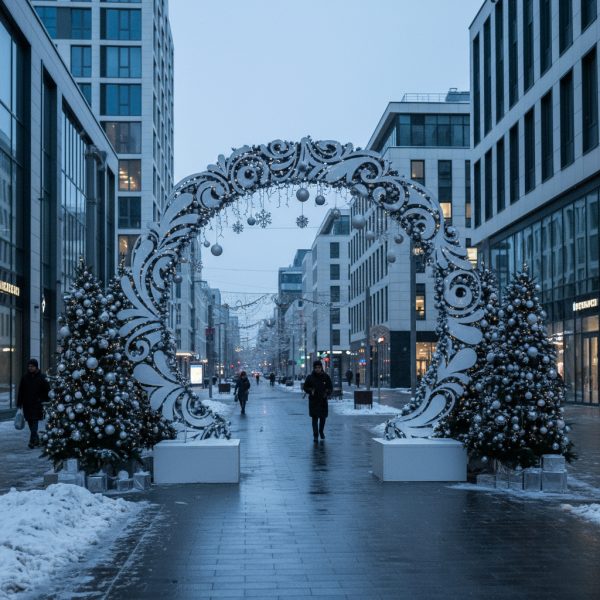 Городские и торговые площадки — крупные уличные инсталляции, подсветка, оформление входных групп;
