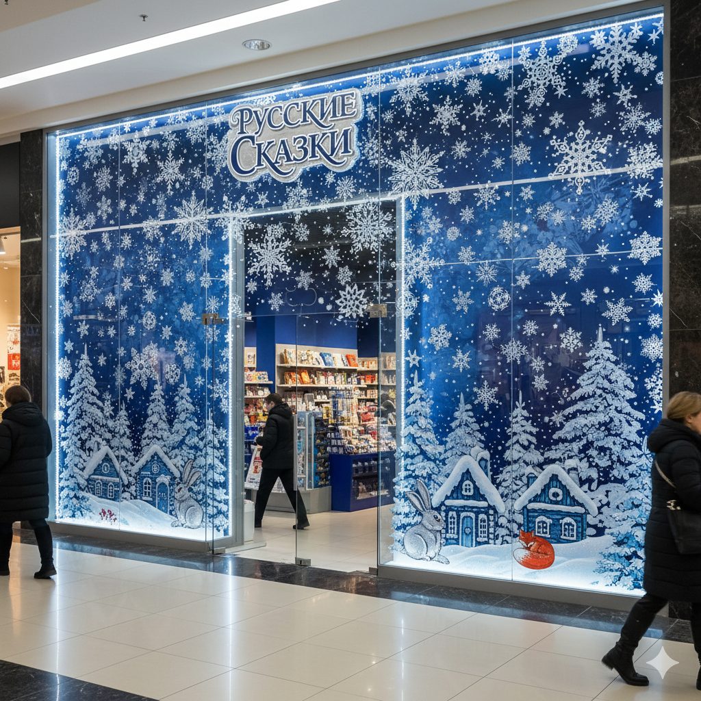 Торговые центры и магазины: Цель – привлечение покупателей и создание праздничного настроения. Применяются яркие, динамичные световые инсталляции, тематические витрины, крупные елки и объемные фигуры, создающие «вау-эффект».