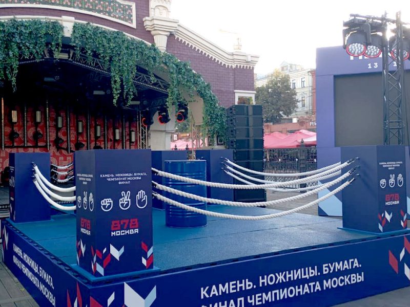 Монтаж. Чаще всего на бизнес-площадках монтаж разрешен только в ночное время накануне события. Наши бригады работают 24/7, чтобы к 8:00 утра площадка была идеально готова.