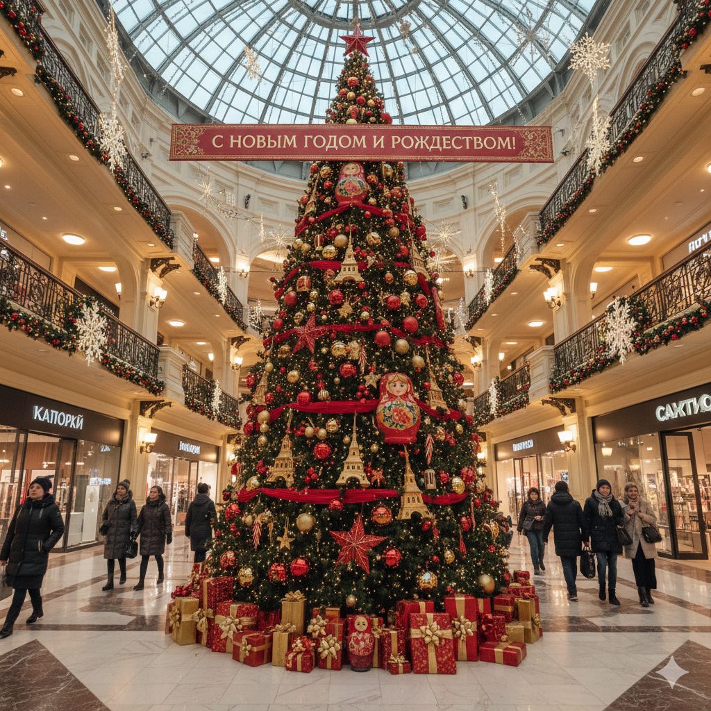 • Атриум и центральная площадь: Обычно здесь располагается главная елка.