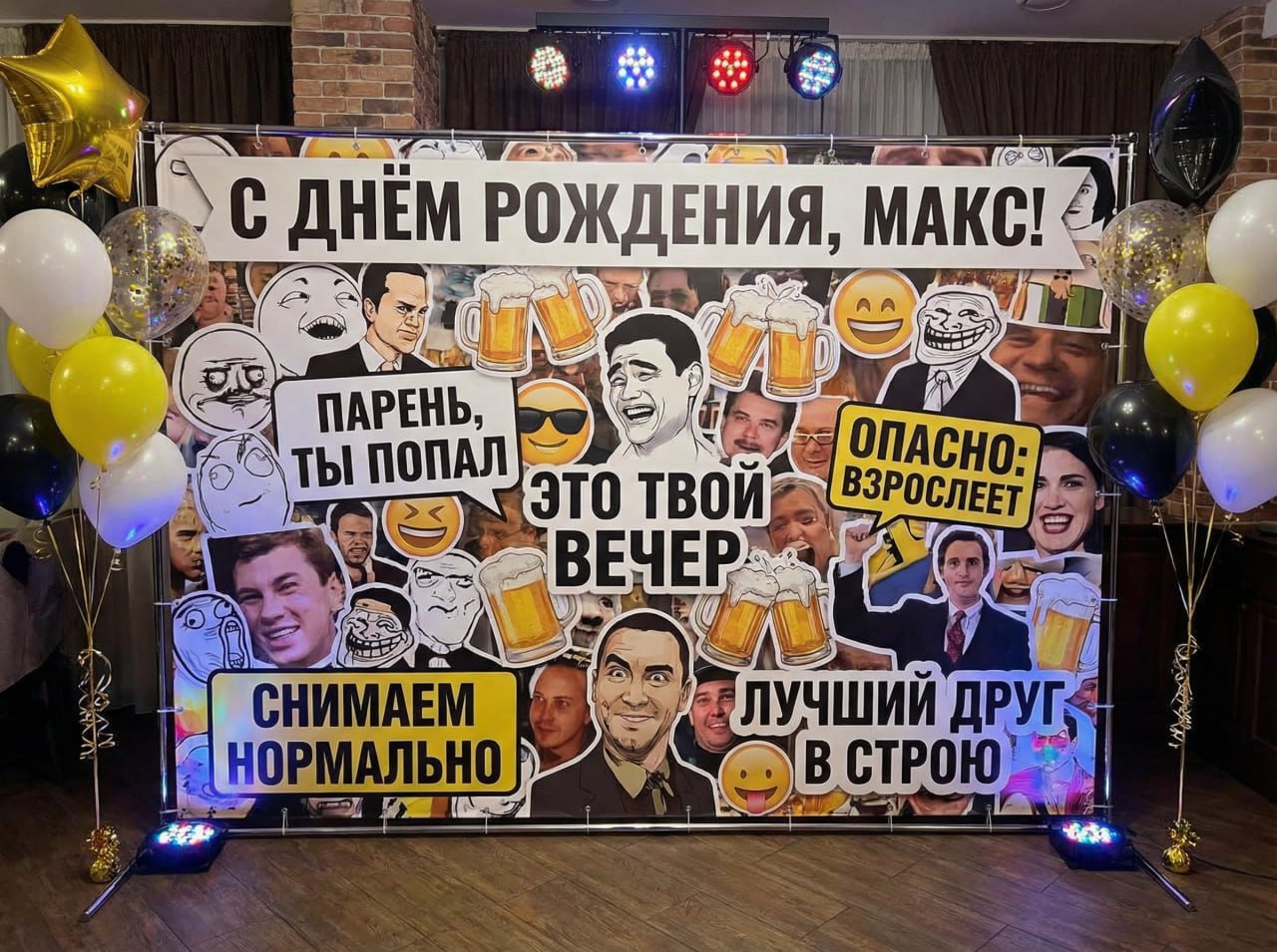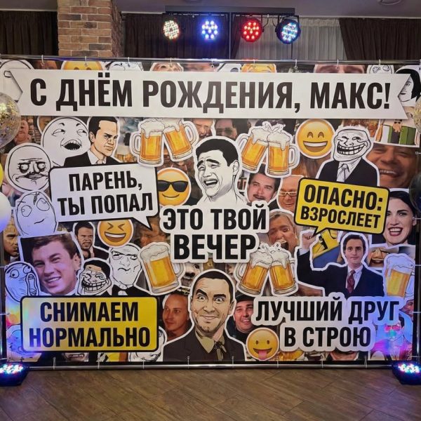 Фотозона на день рождения в Москве — печать, оформление и монтаж под ключ