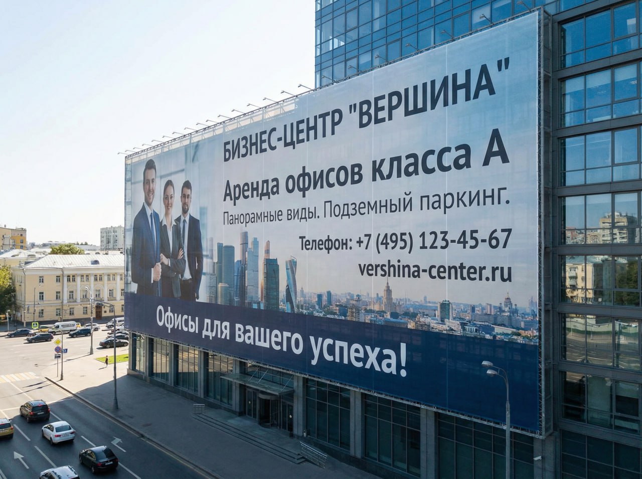 Для оформления заборов мы используем исключительно баннерную сетку (Mesh) плотностью 270–370 г/м². Использование обычного литого баннера (сплошной ткани) на заборах — грубая ошибка.