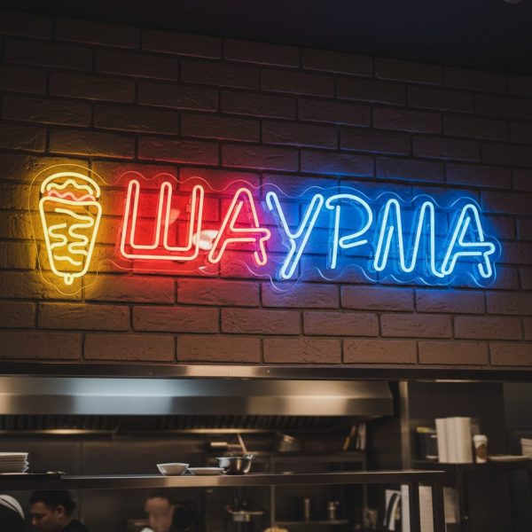 Неоновая вывеска «Шаурма» с оранжевым тёплым свечением