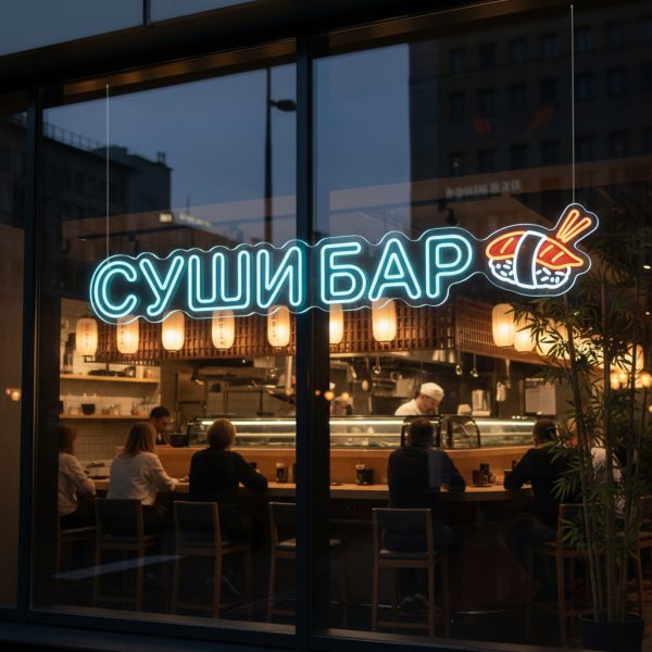 Такая вывеска не устаревает и подходит для любых пространств — от компактных точек фастфуда до премиальных бутиков.