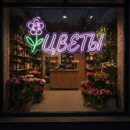 Неоновая вывеска «Цветы с лепестком» — нежный акцент для витрины и интерьера