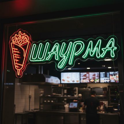 Неоновые вывески «Шаурма» — яркая реклама для кафе и фастфуда