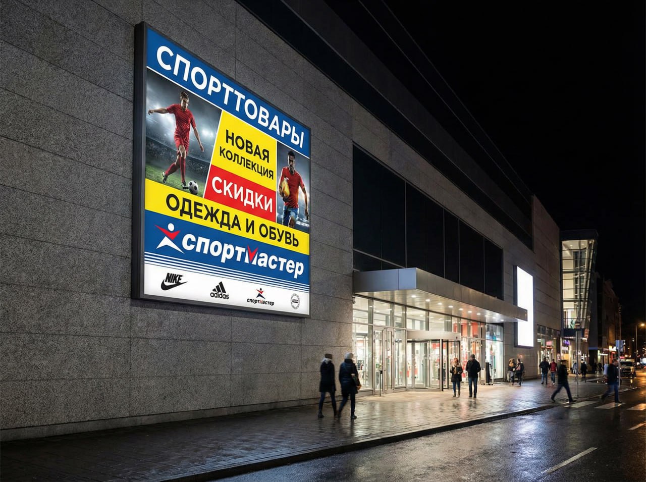 Гипермаркеты и Склады: Вывески длиной 50+ метров над входом.