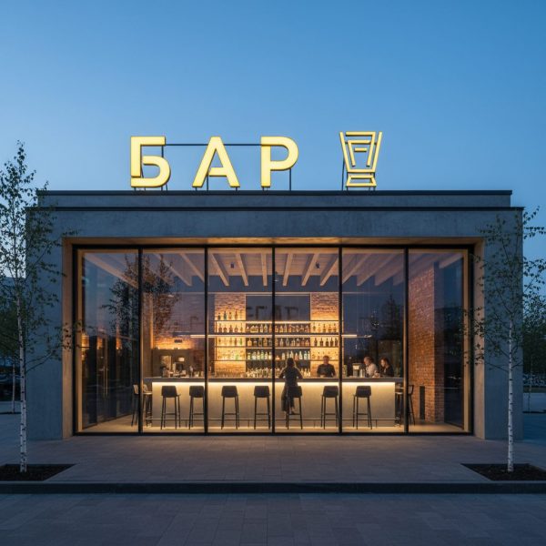 В Москве, где уличная культура и вечерняя жизнь активно развиваются, фасад бара с продуманной вывеской становится настоящей визитной карточкой заведения.