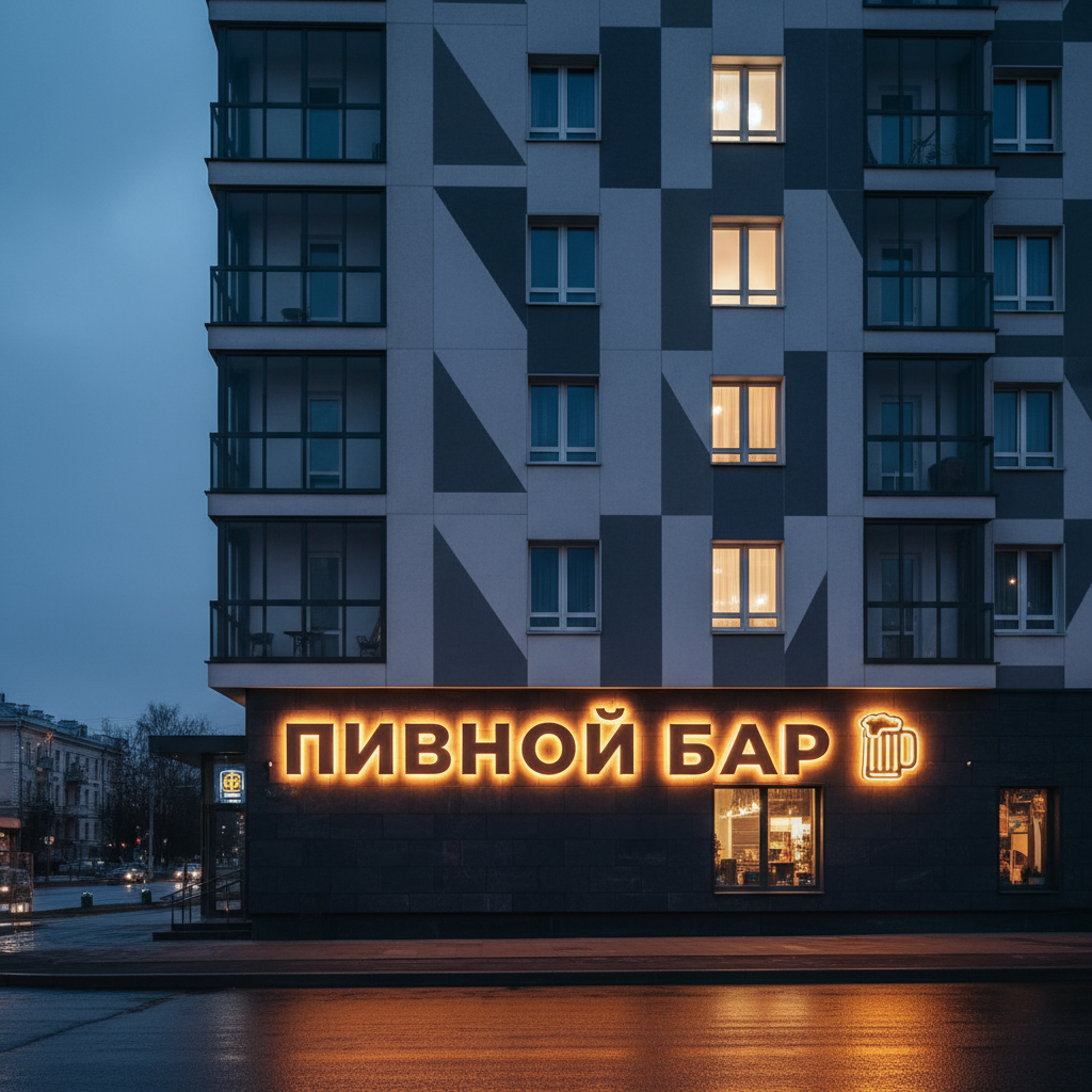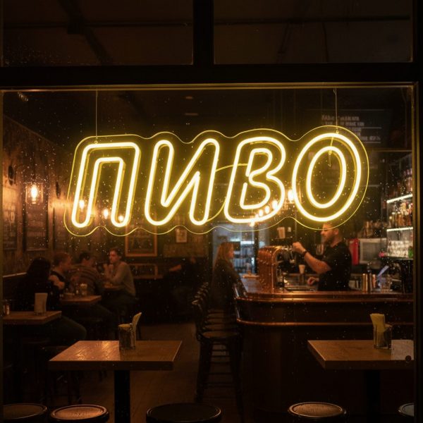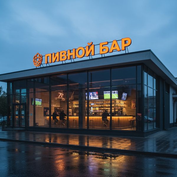 Пивные бары работают преимущественно вечером — значит, вывеска должна быть яркой, но не слепящей.