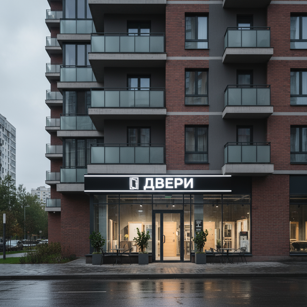 Двери — это товар, который ассоциируется с надёжностью и эстетикой. Покупатель ожидает, что магазин будет оформлен в том же стиле — аккуратно, современно и с чувством вкуса.