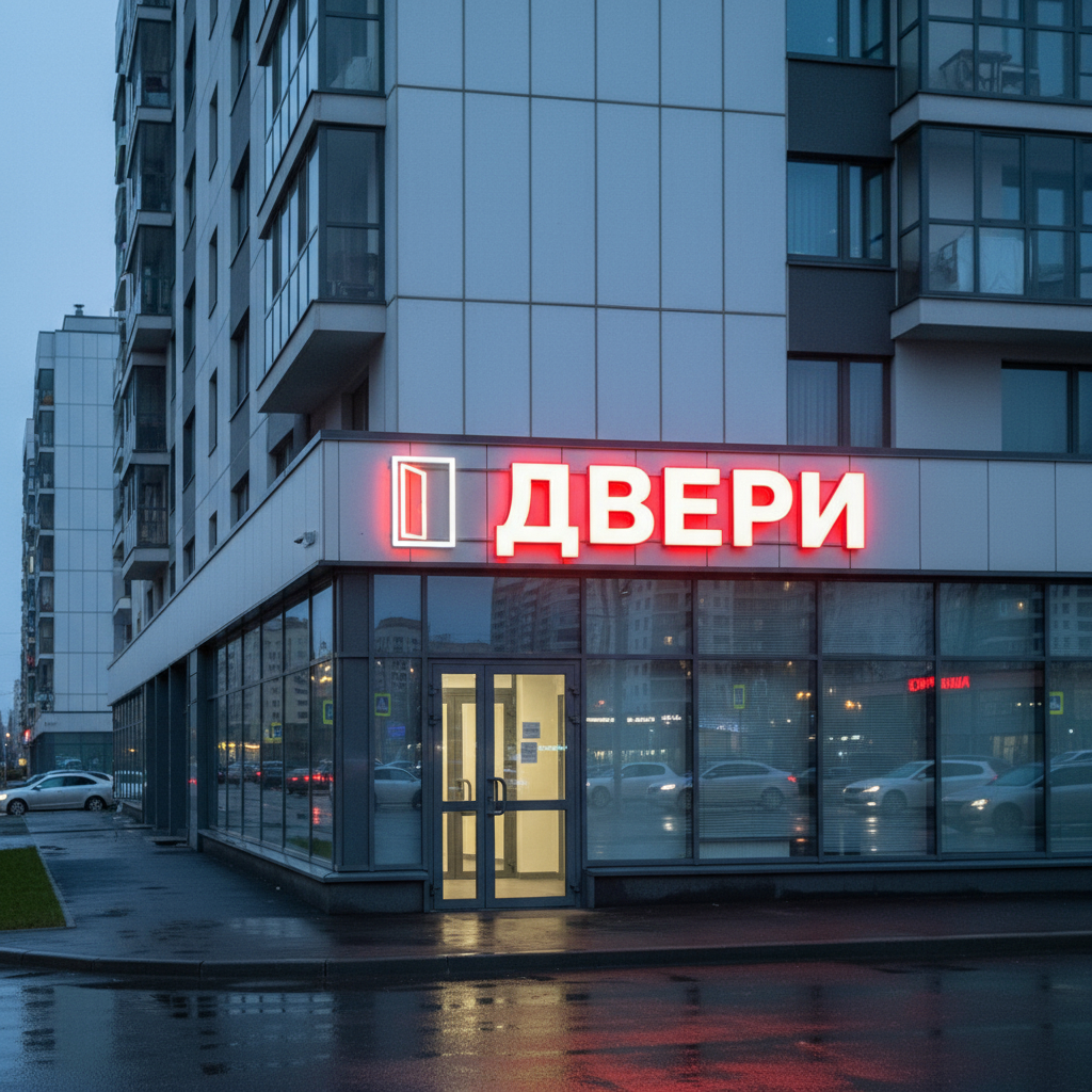 В Москве, где на одной улице может быть сразу несколько дверных салонов, правильная вывеска становится конкурентным преимуществом — она выделяет бренд, привлекает внимание и формирует доверие ещё до входа в магазин.