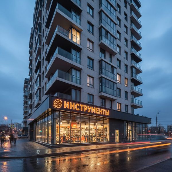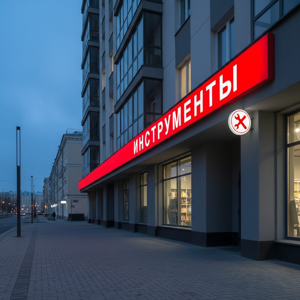 Магазины инструментов часто работают в промзонах и на оживлённых трассах, где освещение играет ключевую роль.